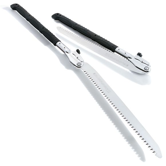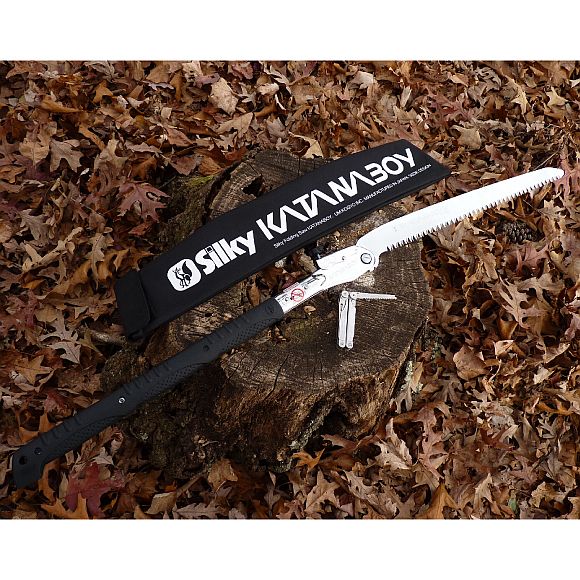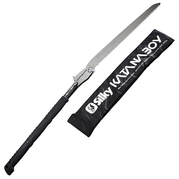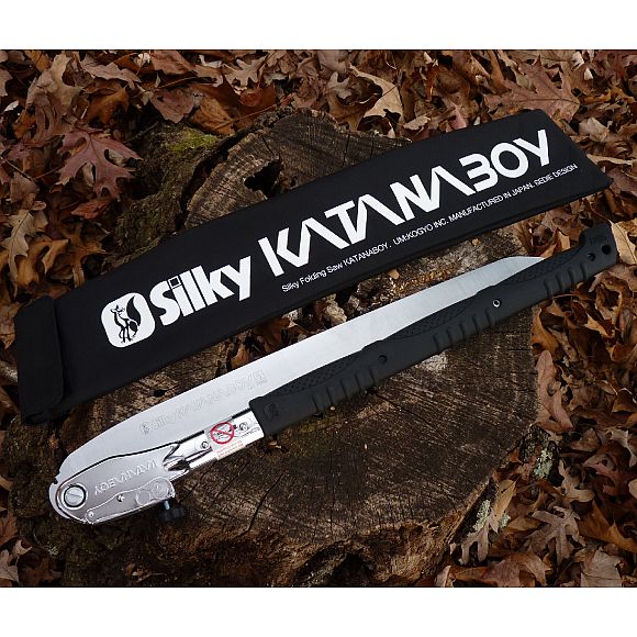 Übersetzt ins Deutsche bedeutet Katana gebogen, es ist auch der Name des Schwertes, das von den Samurai benutzt wird. Die Katanaboy Säge kann bequem mit einer Motorsäge verglichen werden, jedoch ohne Öl, Benzin, Lärm, Umweltverschmutzung und anspruchsvolle Wartung. Diese robuste Zweihand-Klappsäge von Silky ist derzeit die größte ihrer Klasse. Robuste Säge, gut ausbalanciert, mit konisch geschliffenem 500mm, 650mm oder 1000mm Blatt. Das Sägeblatt ist aus hochwertigem, kohlenstoffreichem Stahl gefertigt und hohlgeschliffen zum Rücken hin. Die Zähne sind nicht gehärtet und können nachgeschliffen werden. Trotzdem halten sie bis zu dreimal länger als herkömmliche Sägen und ermöglichen es Ihnen, große Äste und Baumstämme fast mühelos zu schneiden. Der rutschfeste, beidhändig bedienbare, gummierte Griff mit Polsterung sorgt für einen sicheren und komfortablen Halt auch unter schwierigsten Einsatzbedingungen. Diese Säge ist auch für Profis geeignet. Außergewöhnliches Design, Stärke, Ausgewogenheit und eine hervorragende Verarbeitung zeichnen diese großartige Säge aus.