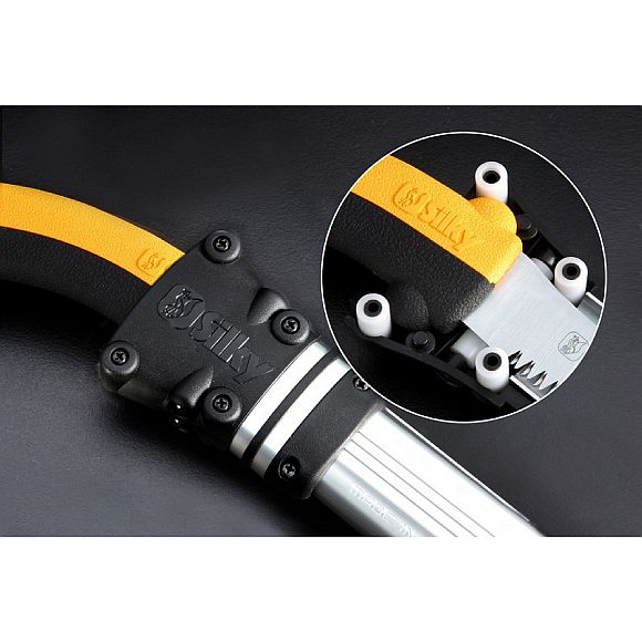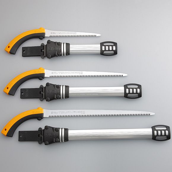 Tsurugi Astsägen sind in 3 Längen (Sägeblatt 200, 300 und 400 mm) und mit grober oder mittlerer Verzahnung erhältlich. Die wirklich sehr schmale Blattbreite macht diese Säge ideal für die Beschneidungen in Bereichen mit sehr dichter Vegetation. Der Gummigriff besteht aus zwei Teilen ohne Schrauben oder Bolzen und kann ohne Werkzeuge entfernt und das Blatt gewechselt werden. Zum Lieferumfang gehört ein Schutzhalfter mit Gürtellasche. Das Halfter ist mit sechs Rollen versehen, damit die Sägezähne die Schutzhülle nicht beschädigen beim Herausziehen oder Hineinführen. Die Tsurugi ist eine einzigartige Säge, die dank der Qualität des Materials in Verbindung mit einer speziell geschliffenen Schneidkante und einem langlebigen, extra schmalem Sägeblatt problemlos hartes und weiches Holz an Orten mit wenig Platz schneidet.