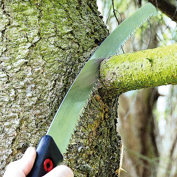 Professionelle japanische Säge für Anspruchsvolle. Schnittlänge 390 mm mit gebogenem Sägeblatt und grober Verzahnung, die höhere Schnittgeschwindigkeiten bei geringerem Kraftaufwand ermöglicht. Geliefert mit eigenem Kunststoffköcher inkl. Gürtelhalter. Großartige Kombination aus leistungsstarker, grober Verzahnung und einem komfortablen Griff, der wirklich gut in der Hand liegt. Geeignet für das Beschneiden von hohen Bäumen, auch für große Äste.