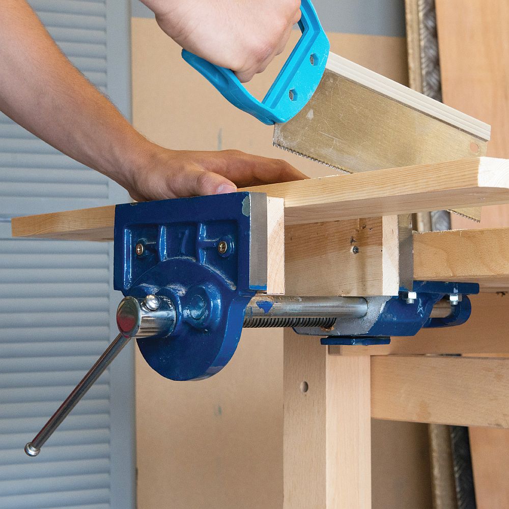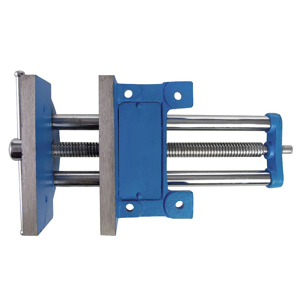 Guss-Schraubstock mit großen Backen 18 x 7,5 cm mit einer Spannweite von 180 mm für alle Tischlerarbeiten, 2 Stahlgleitstangen, massive Trapezgewindespindel.