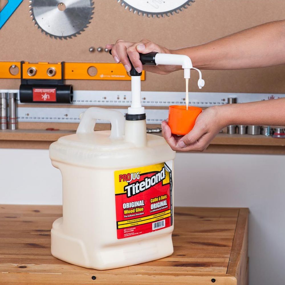 Die Titebond-Pumpe vereinfacht das Umfüllen und hält Ihre Werkstatt sauber. Dieser Leimspender ermöglicht das einfache Umfüllen von Klebstoff aus 3,8l und 8l ProJUG-Klebstoffbehältern, z.B. Titebond Original, Titebond II Premium und Titebond III Ultimate in kleinere Behälter. Hält Ihre Werkstatt stets sauber. Lässt sich nach der Anwendung tropfsicher wieder lagern. Der Leimspender lässt sich leicht zerlegen und mit Wasser reinigen. Mit diesem langlebigen und praktischen Leimspender gehört eine klebrige Werkstatt der Vergangenheit an.