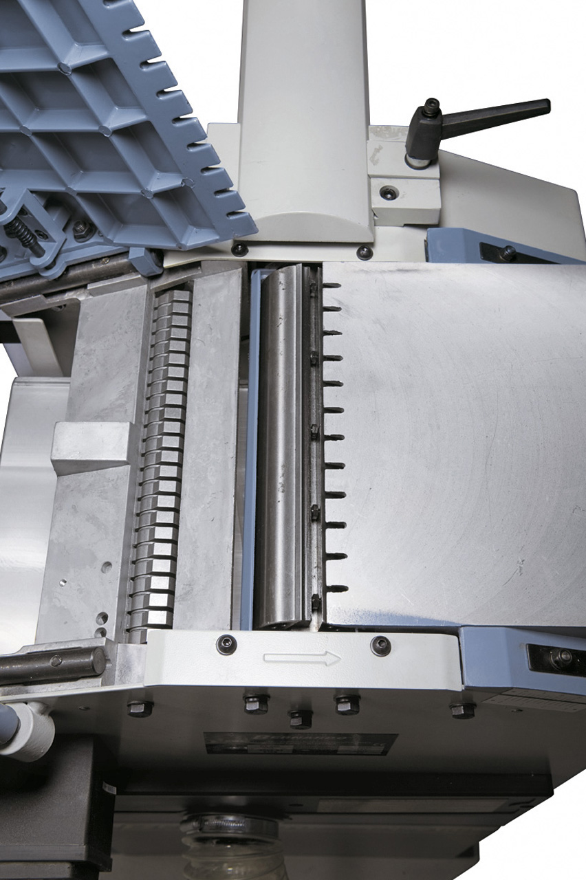 - Geriffelte Einzugswalze für sicheren und gleichmäßigen Werkstückvorschub