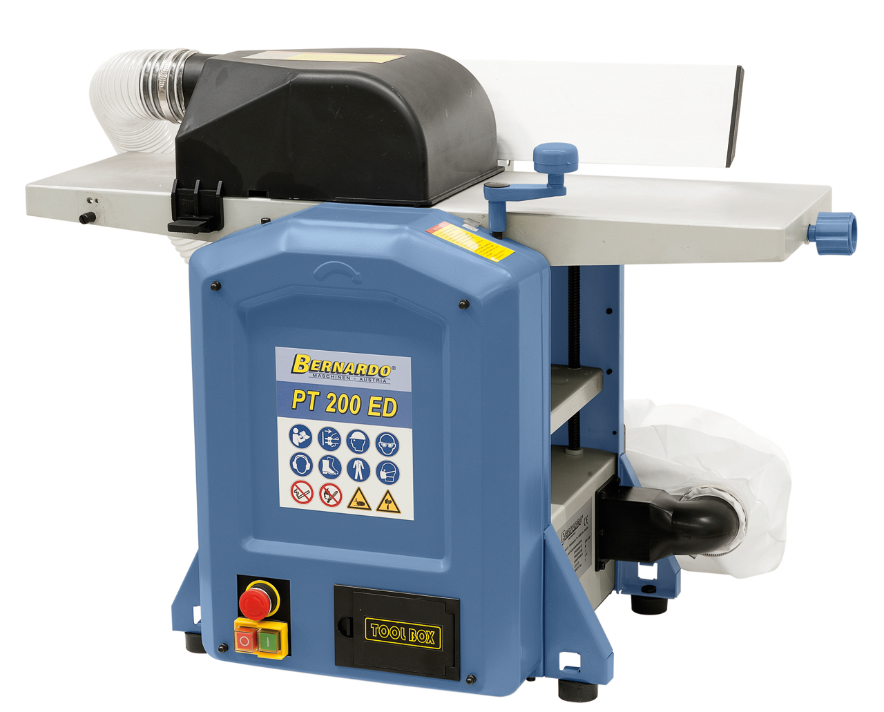 Die Abricht- und Dickenhobelmaschine PT 200 ED überzeugt durch den hohen Dickendurchlass von 210 mm sowie der integrierten Absaugung. Durch die kleine und kompakte Bauweise ist dieses Modell ideal für den Hobbybastler.